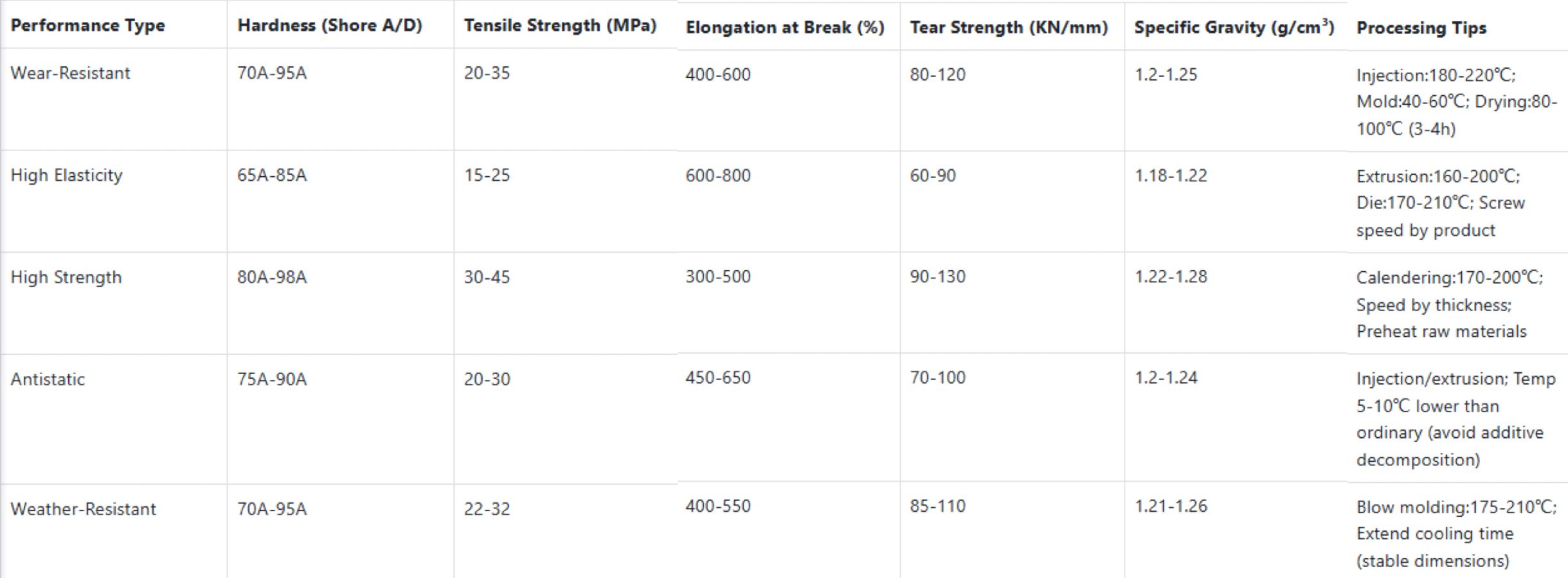 Compuși modificați TPUsunt produse prin procese de modificare avansată, încorporând aditivi funcționali specifici în timpul fabricării. Acestea oferă o ajustare excelentă a performanței, permițând proprietăților precum rezistența la abraziune și rezistența la intemperii să fie adaptate la cerințe, menținând în același timp proprietăți mecanice fundamentale. În mod crucial, elasticitatea și flexibilitatea lor inerentă sunt păstrate, facilitând procesarea și modelarea ulterioară. În comparație cu materialele TPU standard, acești compuși oferă performanțe mai vizate.